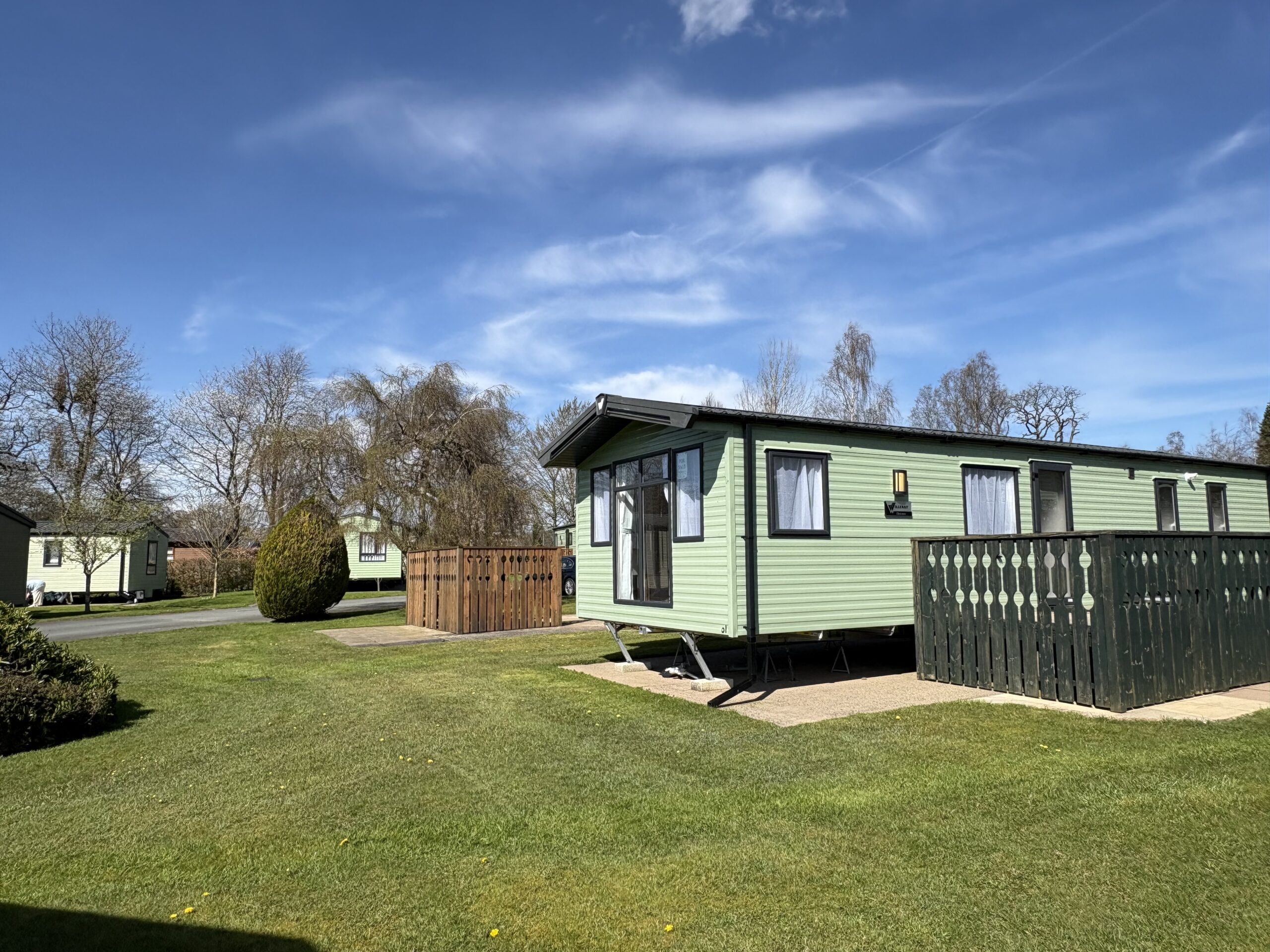 Located on plot 61 at Dolgead Hall, this pre-owned holiday home is in superb condition throughout and includes side decking and metal storage shed.