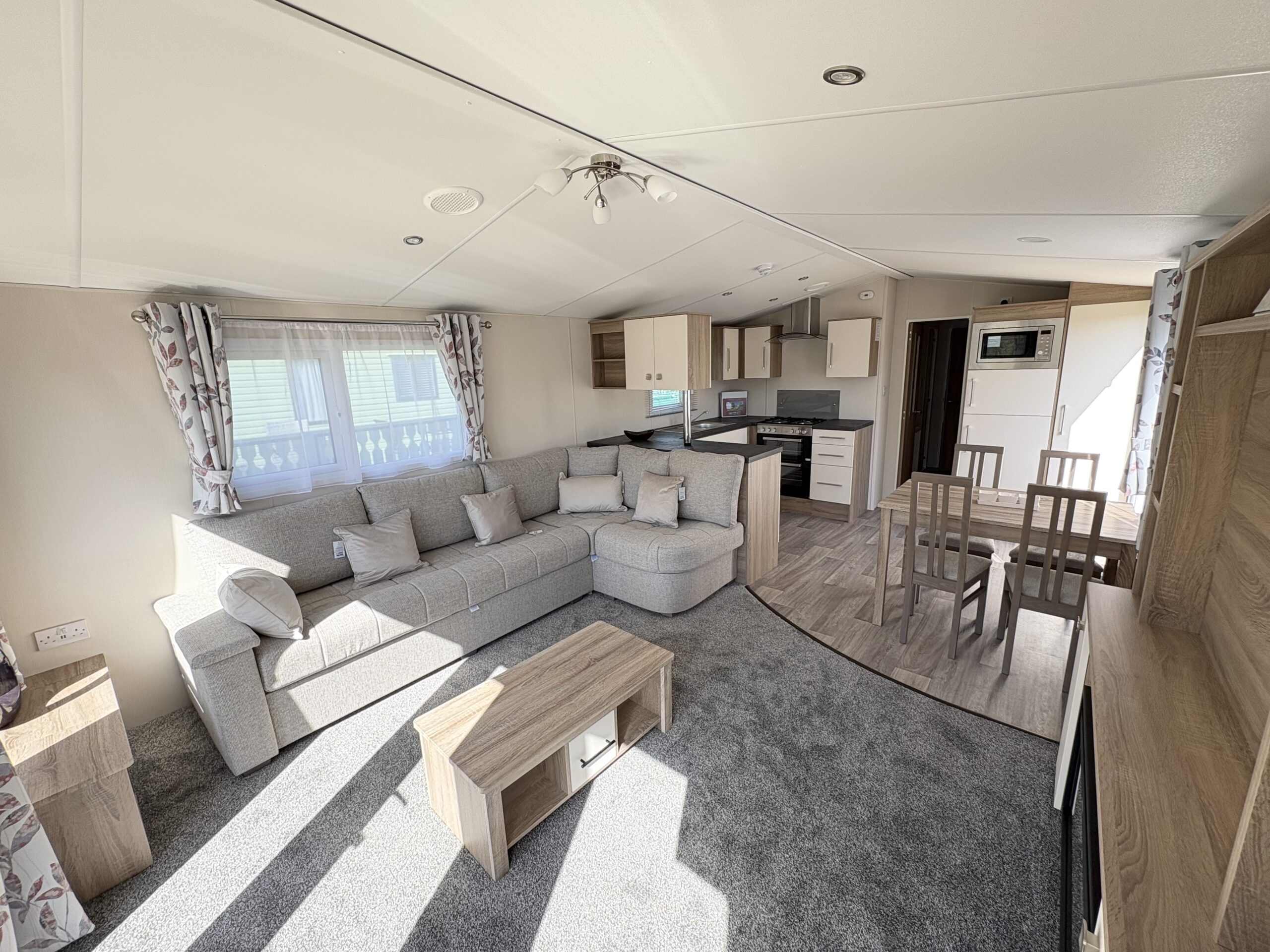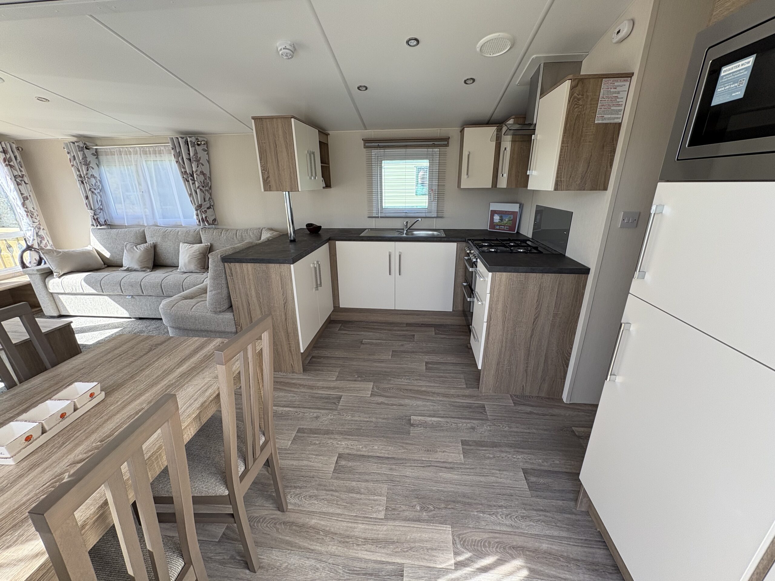 Inside the Maple has an open plan living area with a fully fitted kitchen and free standing dining table and chairs.